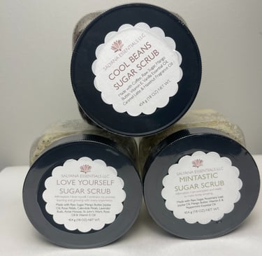 Innovative 3-in-1 cleansing experience. Exfoliate, cleanse, clear energy. Our signature soap-infused sugar scrub for energetic boundary setting.